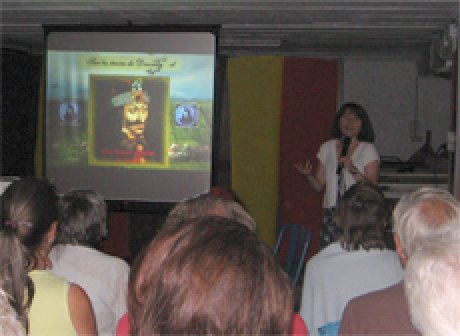 Der ganze Tag in Saint-Frajou stand unter rumänischem Vorzeichen: Auf dem bereits zum 5. Mal von der Gemeinde organisierten Europäischen Tag galt es, Rumänien in möglichst vielen Facetten vorzustellen. Dazu diente neben dem Diavortrag von Arne Franke ein abwechslungsreicher, sehr ansprechend gestalteter Diavortrag über Rumäniens Geschichte, seine Regionen, seine Sitten und Gebräuche sowie natürlich über den Dracula-Mythos, gehalten von der Historikerin Simona Dragomir-Saint Martin. Die gebürtige Rumänin lebt heute in der Gegend von Saint-Frajou und war auch für das sich an die Vorträge anschließende Mahl verantwortlich, das die Gäste mit von der Gemeinde selbst zubereiteten rumänischen Speisen verwöhnte – allen voran Mamaliga, ein salziger Maismehlbrei und rumänisches Nationalgericht.
