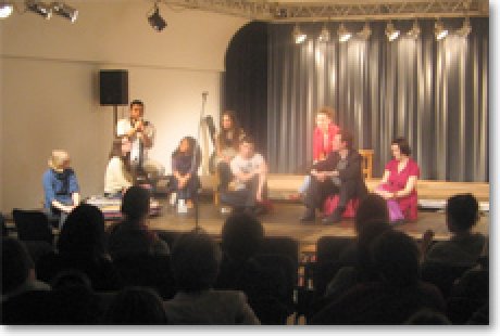 Ja. Wir begannen damit, dass wir in Pécs ankommen, um ein gemeinsames Projekt mit den Ungarndeutschen auf die Beine zu stellen, bauten daraus die erste Szene, in der die Gäste auch die ungarische Teilnehmerin, die Fremdenführerin, treffen, die ebenfalls auf der Suche nach den Ungarndeutschen ist – und so suchen sie gemeinsam. Praktisch haben wir dann bei einem Programmpunkt der Freizeitgestaltung ungarndeutsche Volkstänzer getroffen, die sich von den Jugendlichen interviewen ließen und viele konkrete Antworten gaben, z. B. dass sie zwar deutsch kochen, aber ungarisch würzen, dass sie sich nicht deutsch fühlen, aber auch nicht ungarisch, sondern eben ungarndeutsch, dass Tradition, Tanz, Gesang und die Sprache ganz wichtig für sie sind – gerade letzteres konnten unsere Jugendlichen sehr gut nachvollziehen, auch sie lernen alle türkisch. Über die Zukunft der Ungarndeutschen konnten wir dann noch den Leiter des Lenau-Hauses, Herrn Janos Habel, einen Ungarndeutschen, befragen. Diese Gespräche sind als Teil des Stückes in die Inszenierung eingeflossen und stehen sozusagen für die Ungarndeutschen. Auf der Bühne selbst zu Wort kamen dann noch unsere Assistentin und der Ungarndeutsche Christian Erdei, der Redakteur beim Radio Fünfkirchen ist und im Vorfeld der Theaterwerkstatt schon über die Schwierigkeiten, ungarndeutsche Teilnehmer zu finden, berichtet hatte.
