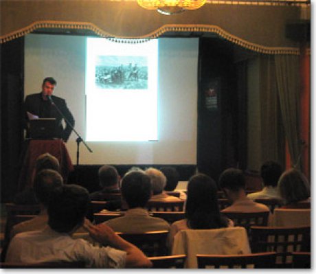 Am zweiten Workshop-Tag ging es außerdem um die Mythenbildung nach der Schlacht von Grunwald 1410 in Deutschland, Polen und Litauen; hier der Historiker Christoph Mick von der University of Warwick bei seiner Ausführung der Spezifika der deutschen Mythenbildung.